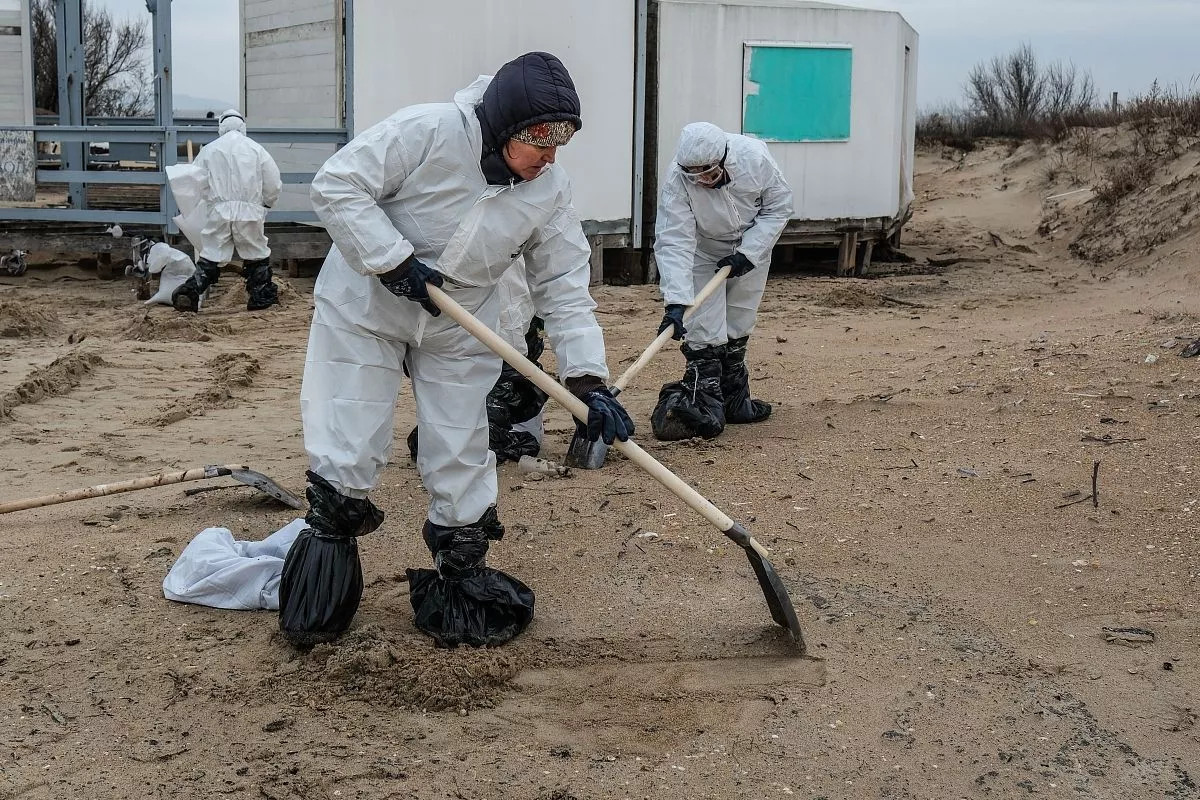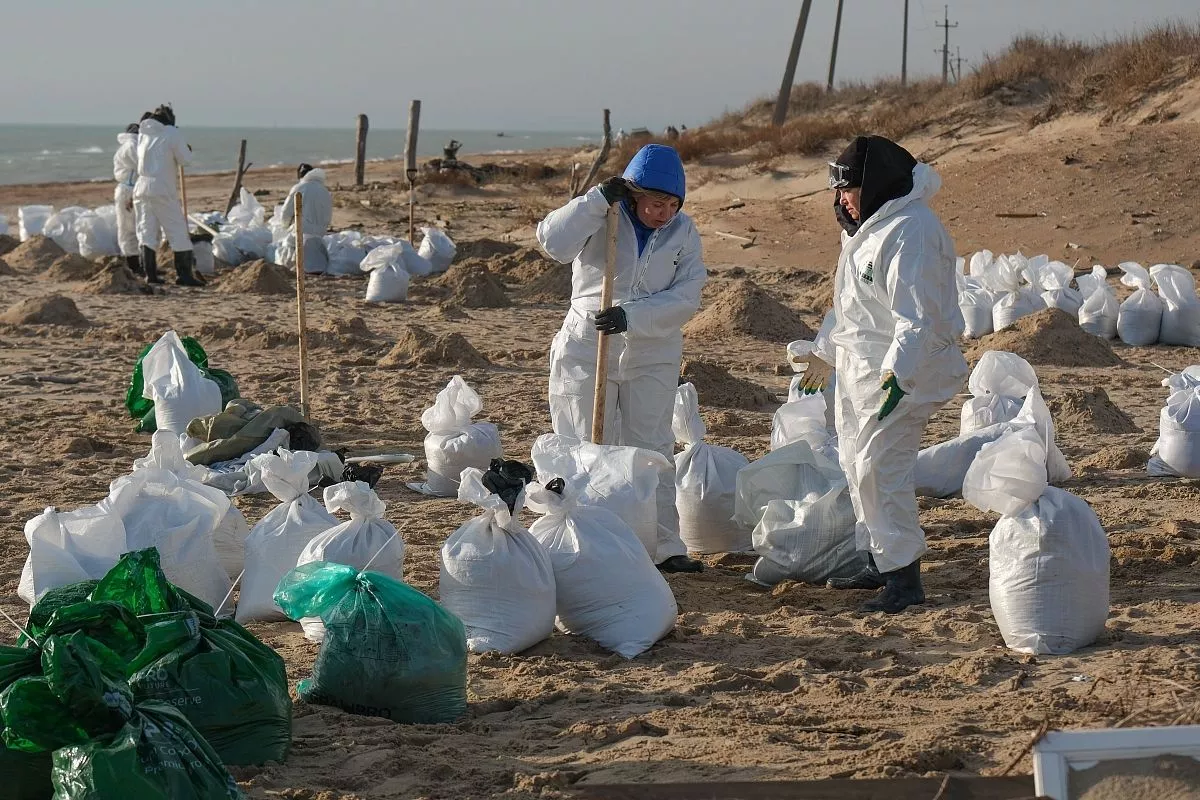 В Анапе и Темрюкском районе продолжаются работы по ликвидации последствий разлива нефтепродуктов после крушения двух танкеров в Керченском проливе.
