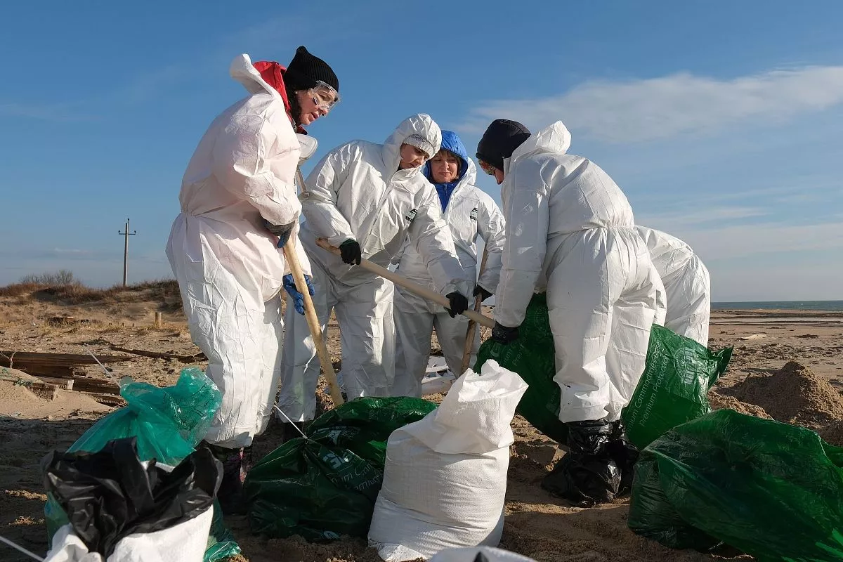 Вторую неделю тысячи волонтеров приезжают в Анапу и Темрюкский район Краснодарского края, чтобы помочь в очистке песчаных пляжей от мазута, который выбрасывает море. Неравнодушные люди разных возрастов и профессий вручную упаковали в мешки и вывезли более 30 тысяч тонн загрязненного грунта. К сожалению, несмотря на ежедневный кропотливый труд множества людей, работы меньше не становится. Даже там, где море не выбрасывает новые порции тягучего черного мазута, он обнаруживается под слоем песка, который нанесло ветром за несколько дней.