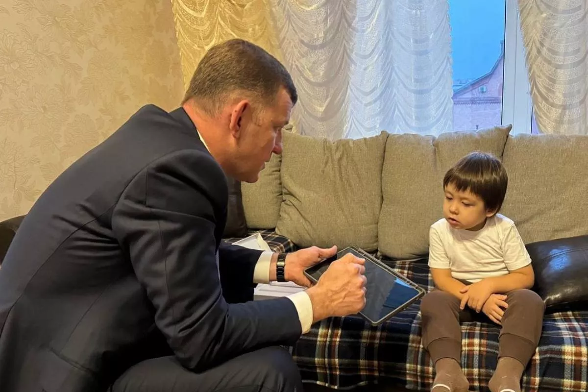И вот в преддверии Нового года от имени губернатора Кубани планшет со специальной ручкой для рисования малышу вручил глава Краснодара Евгений Наумов.
