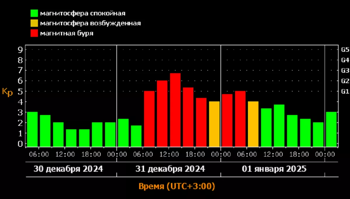 В максимуме ожидается магнитная буря третьего уровня, всего их пять.