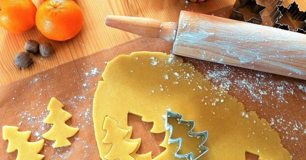 По истечении времени, разделите тесто на несколько кусочков. Каждый раскатайте скалкой до тонкого пласта, толщиной 0,5 мм и вырезайте фигурки специальными формочками.