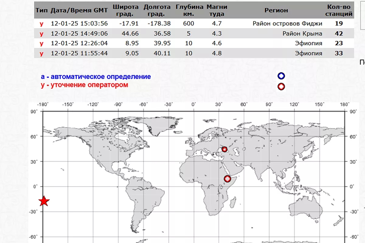 Сейсмическая активность была зафиксирована вечером 12 января.