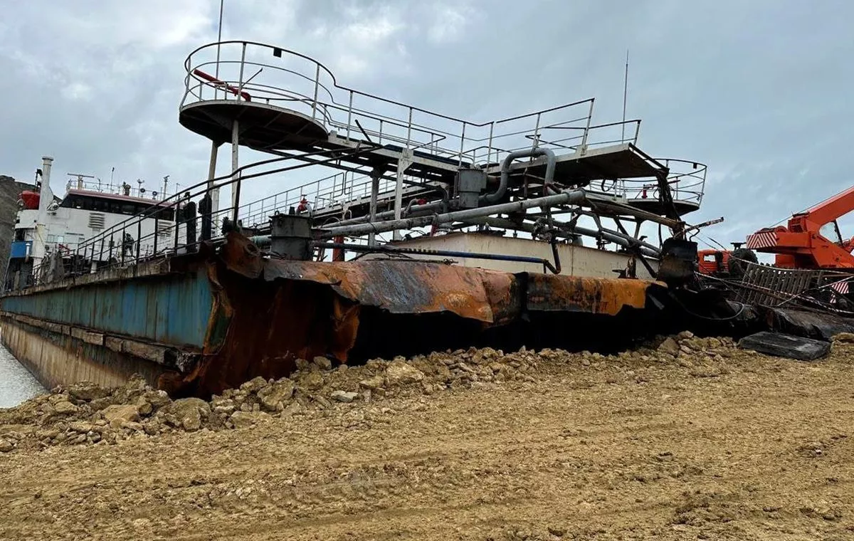 Уточняется, что в настоящее время полностью засыпали и расширили участок рядом с местом разлома судна. Здесь танкер зафиксирован с двух сторон, готова площадка для дальнейшей работы техники.