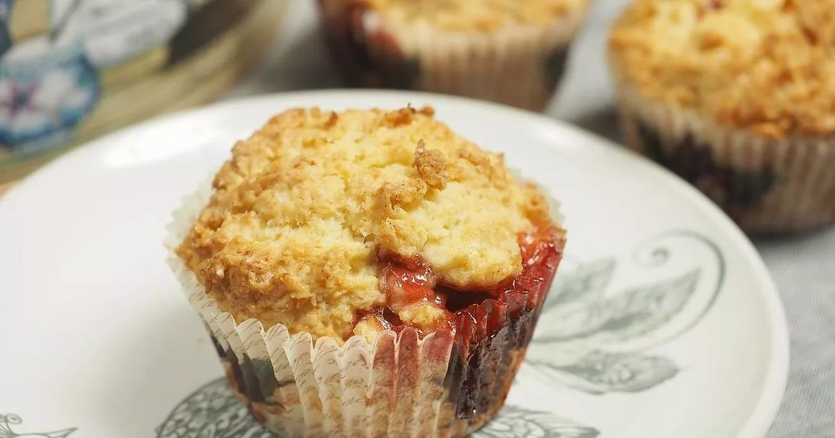 Формочки для кексов наполните тестом на 2/3, а сверху положите любимые ягоды - 2-3 штуки. Выпекать кексы следует в разогретой до 180 градусов духовке 30 минут.