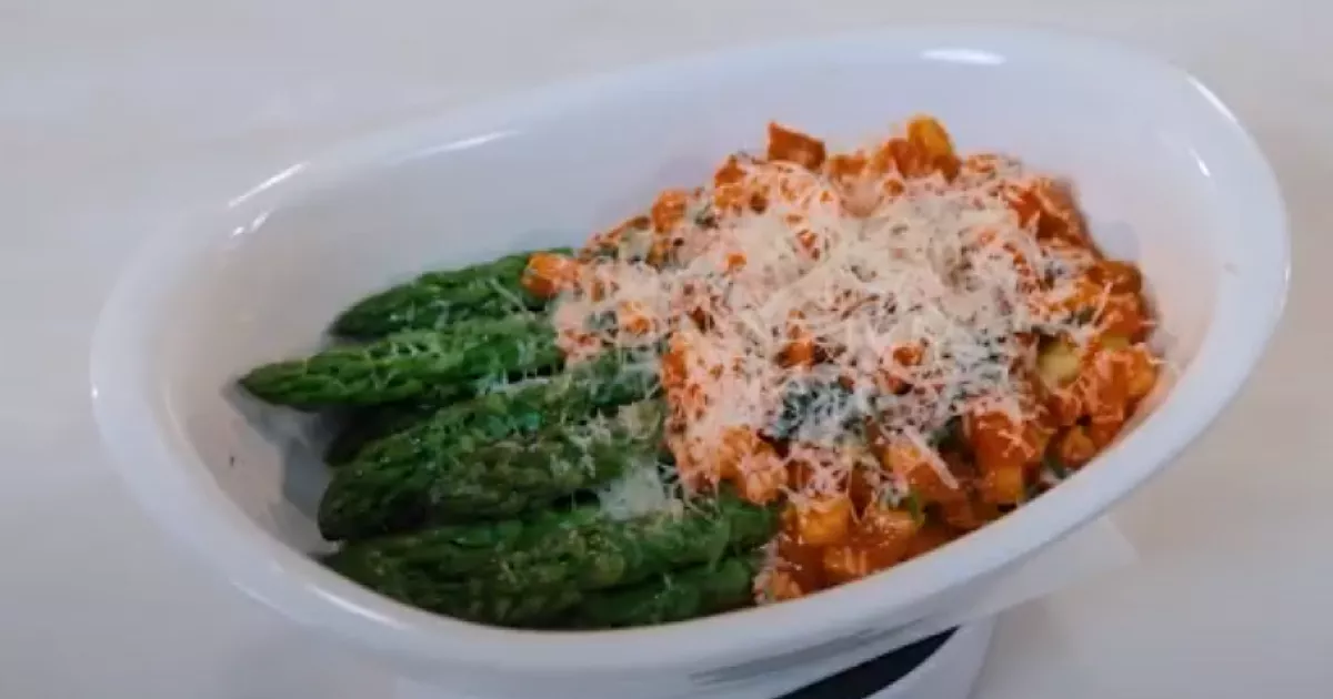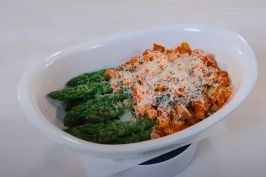 Из спаржи получится один из любимых гарниров шеф-повара Константина Ивлева. Давайте готовить вместе с ним! Спаржа, запеченная с томатами и сыром – просто фантастика! Нам нужны: спаржа — 300 г, помидор — 1 шт., базилик зеленый — 5 г, сыр манчего или пармезан — 80 г, соль, перец — по вкусу.