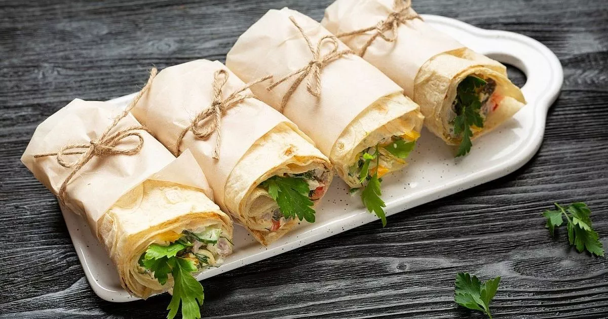В тонкий лаваш можно завернуть любые продукты - получится вкусно и красиво.