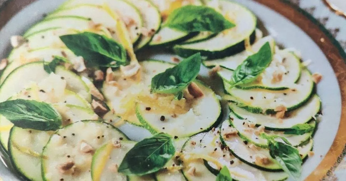 Два средних цукини или молодых кабачка нарежьте очень тонкими кружочками. Разложите их на большой тарелке, полейте приготовленным соусом и оставьте на 10 минут. Перед подачей украсьте листочками базилика. Готовое блюдо можно посыпать кедровыми орешками, слегка подрумяненными на сковородке. К сведению, карпаччо – это тонко нарезанные сырые продукты, заправленные оливковым маслом со специями. Готовятся без хлопот и лишних затрат.