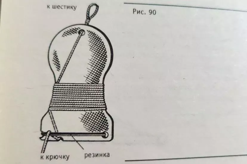 На лепестке должно быть намотано 6 – 8 метров лески. Один ее конец с петелькой пропускают в верхнее отверстие. Другой после намотки лески прикладывают к нижнему срезу лепестка и захлестывают резинкой. На леске закрепляют груз, металлический поводок с живцом.