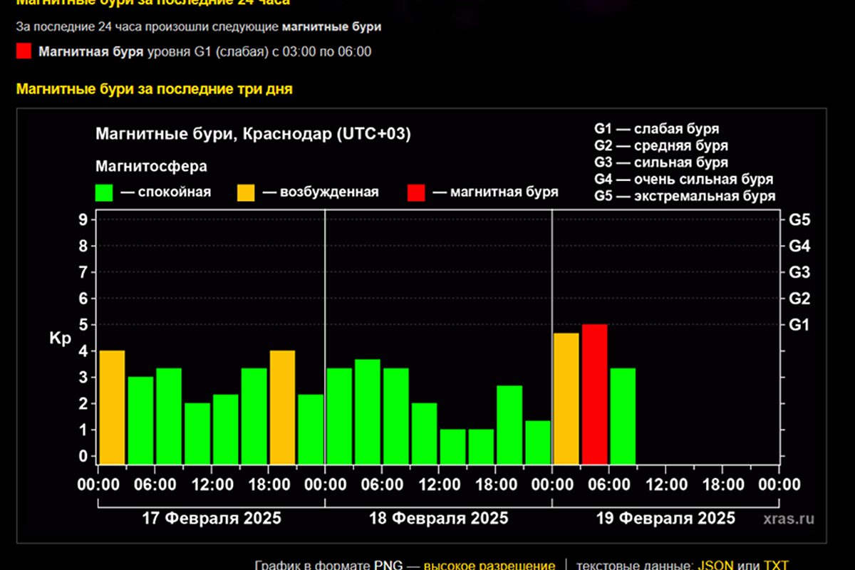 Магнитосфера нашей планеты находилась в возбужденном состоянии в ночь на 19 февраля, к утру была зафиксирована буря уровня G1.