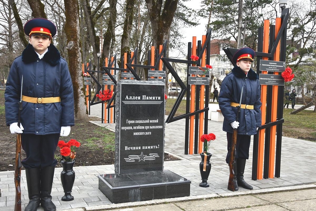 Память бойцов, отдавших жизнь за Родину, почтили в Горячем Ключе. Во время траурной церемонии на городской Аллее Памяти глава города Сергей Белопольский и депутат Законодательного Собрания Краснодарского края Герой России Евгений Шендрик передали семьям героев пять наград от Министерства обороны РФ.