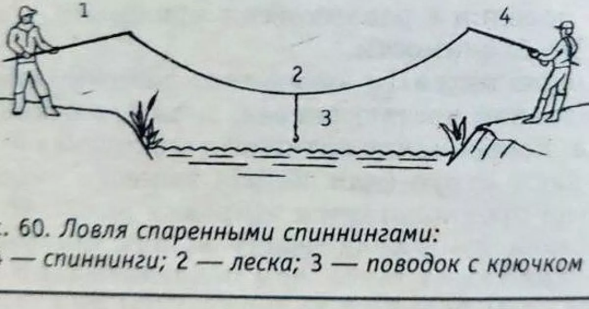 - Делают это два рыболова (как на фото), находящиеся на разных берегах реки. У каждого в руках спиннинг с инерционной катушкой, а лески спиннингов связаны между собой, а в центре прикреплены 1 – 2 поводка метровой длины, - дает совет издание.