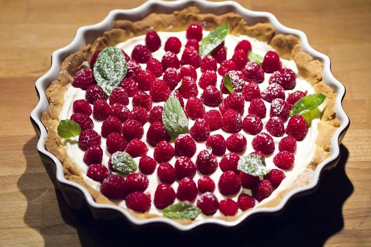 В основе пирога с малиной - классическое песочное тесто.