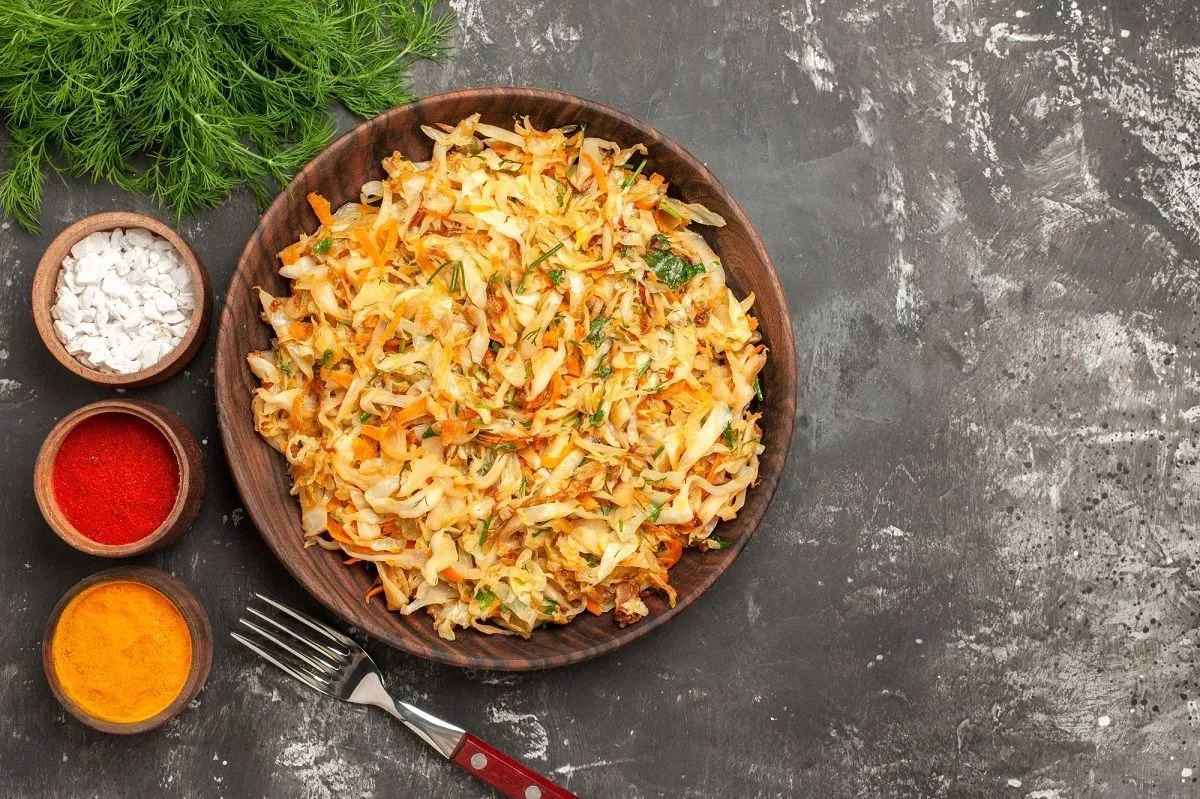 Подавайте тушеную капусту, присыпав ее зеленью.