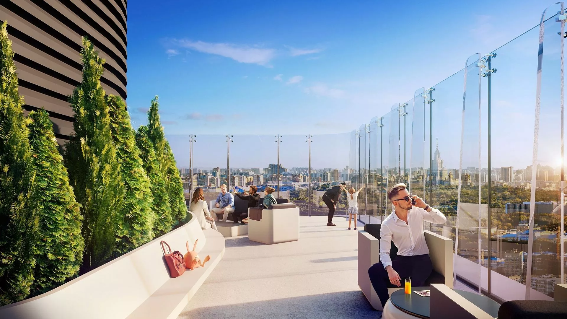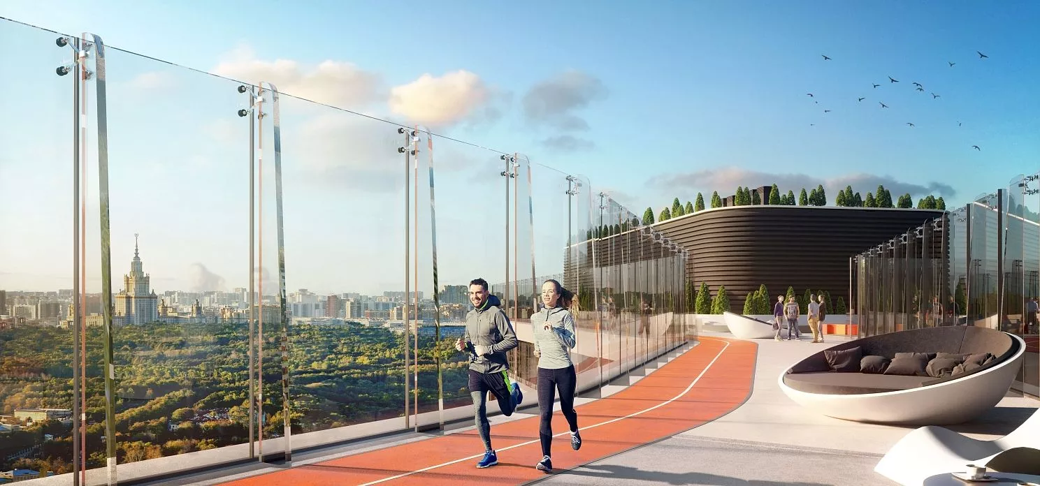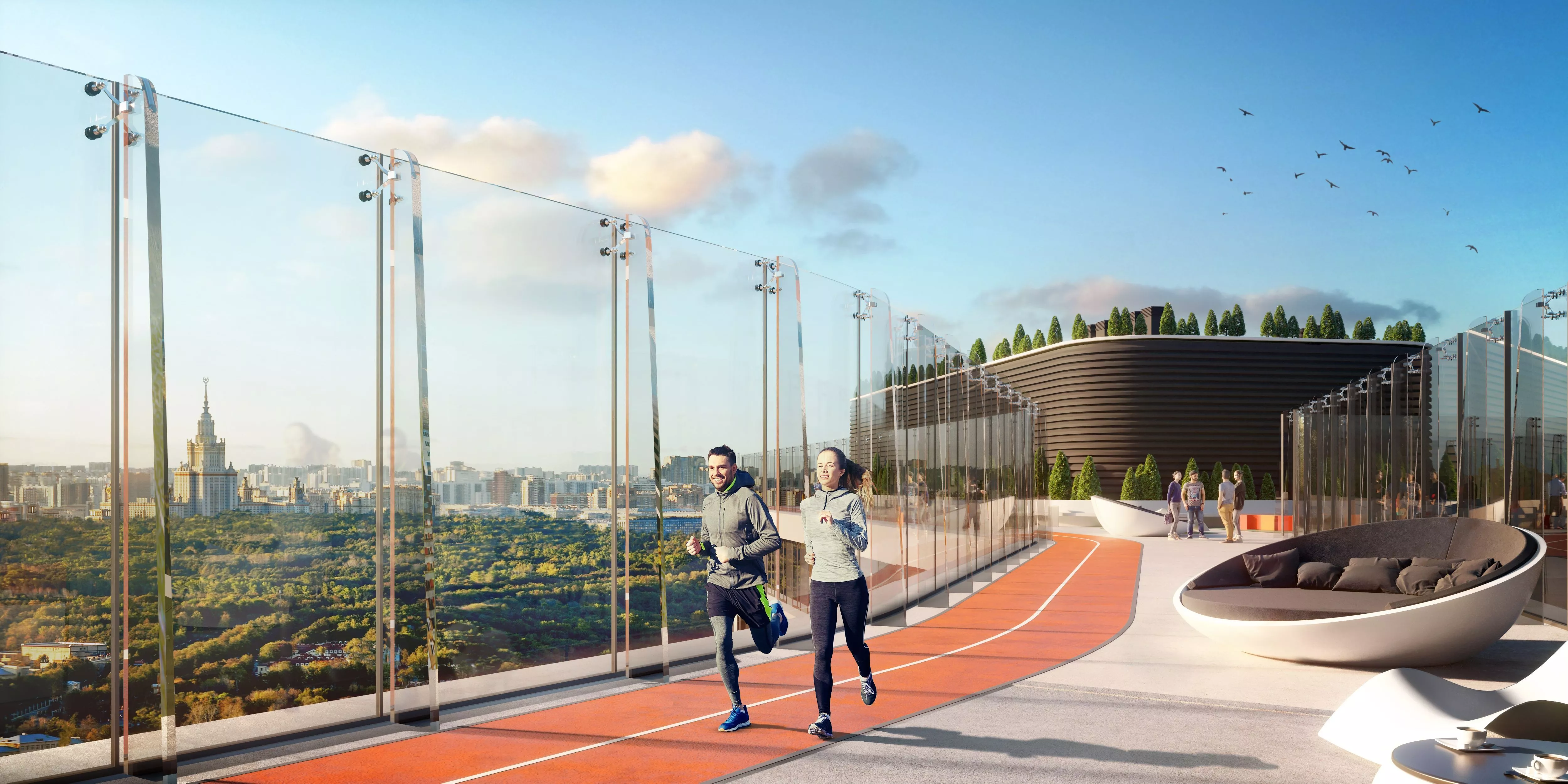 Масштабное воплощение устремленного к небу города будущего разработал знаменитый московский архитектор Филипп Никандров – автор башни «Эволюция» в Сити и «Лахта Центра» в Санкт-Петербурге. Мастер вертикалей создал в «Событии» уникальные в Москве зеленые общественные пространства под облаками. Он открыл небо над Москвой не только обитателям пентхаусов, но и всем резидентам четвертого «События». Безрамное остекление защитных ограждений позволяет любоваться лучшими видовыми панорамами Москвы, которые станут идеальным фоном для любого занятия.