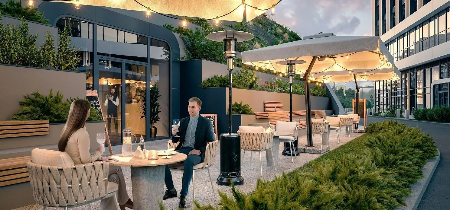 Крыша оказалась внезапно доступным и отлично подходящим для жизни пространством. Возможно, даже лучше, чем двор. Здесь можно гулять с детьми или медитировать, бегать или заниматься йогой, работать под открытым небом или готовиться к сдаче экзаменов, подводить итоги или строить планы. Это отличное место, чтобы провести тут полдня, но иногда и 15 минут может быть достаточно, чтобы восстановить силы. Под открытым небом будут уместны как стаканчик кофе, так и бокал шампанского. Высота дает возможность дышать чистым воздухом и наслаждаться тишиной. Для мегаполиса – это роскошь, достойная элит-класса, но в «Событии» она вполне доступна и в формате бизнес-класса.