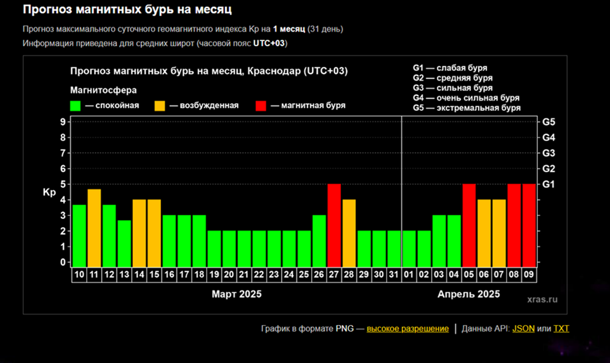 Череда магнитных бурь может ударить по Земле в начале следующего месяца. По данным ученых Лаборатории солнечной астрономии ИКИ и ИСЗФ РАН, возмущения геомагнитного поля планеты возможны 5, 8 и 9 апреля. Экстремальными они не будут - достигнут уровня G1. Незначительные колебания также прогнозируются 6 и 7 апреля.