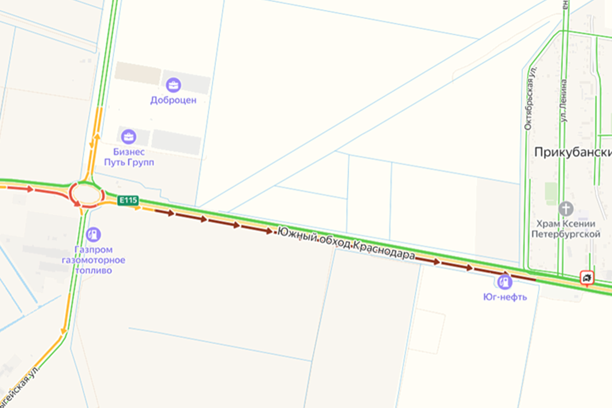 Внушительных размеров автомобильная пробка образовалась днем 13 марта на Южном обходе Краснодара. Машины стоят на трехкилометровом участке трассы у поселка Прикубанский в сторону Адыгеи. Видео затора публикуют местные паблики. Сообщается, что причиной его стало ДТП – кран снес дорожную конструкцию, заблокировав проезд.