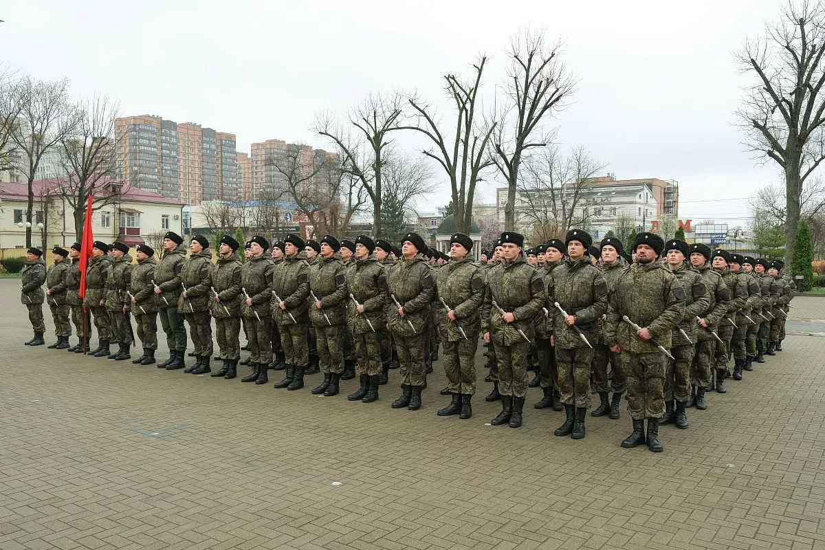 Сегодня на торжественном построении перед отправкой в Московскую область кубанских казаков поздравил с завершением первого этапа подготовки вице-губернатор Краснодарского края, атаман Кубанского казачьего войска Александр Власов: