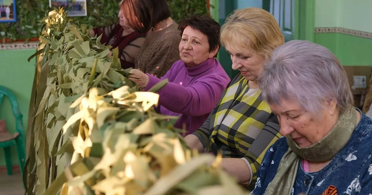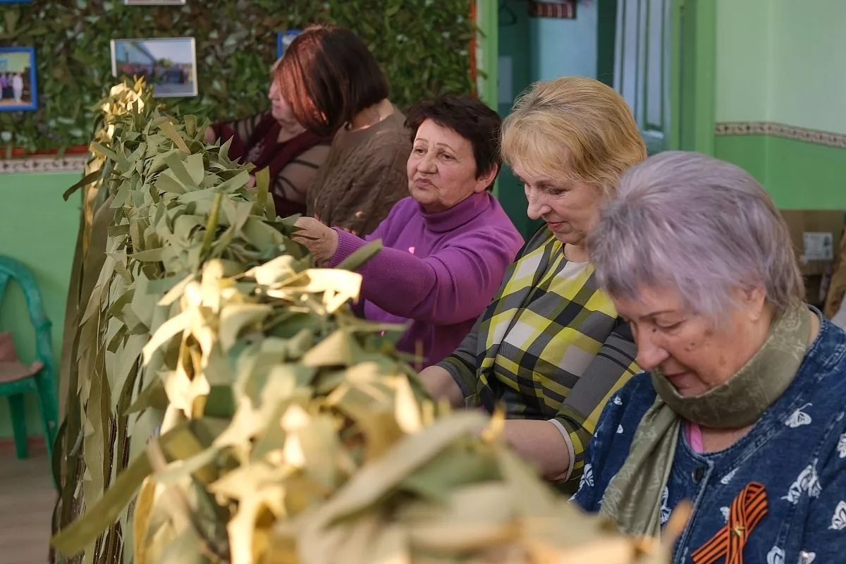 Ежедневно в пункте плетения станицы Ладожской собираются добровольцы, которые изготавливают маскировочные сети и «кикиморы».