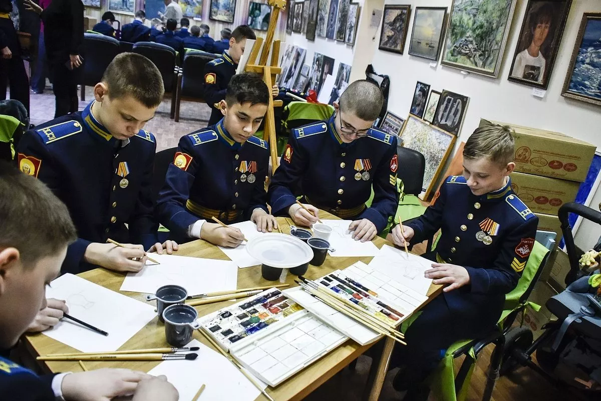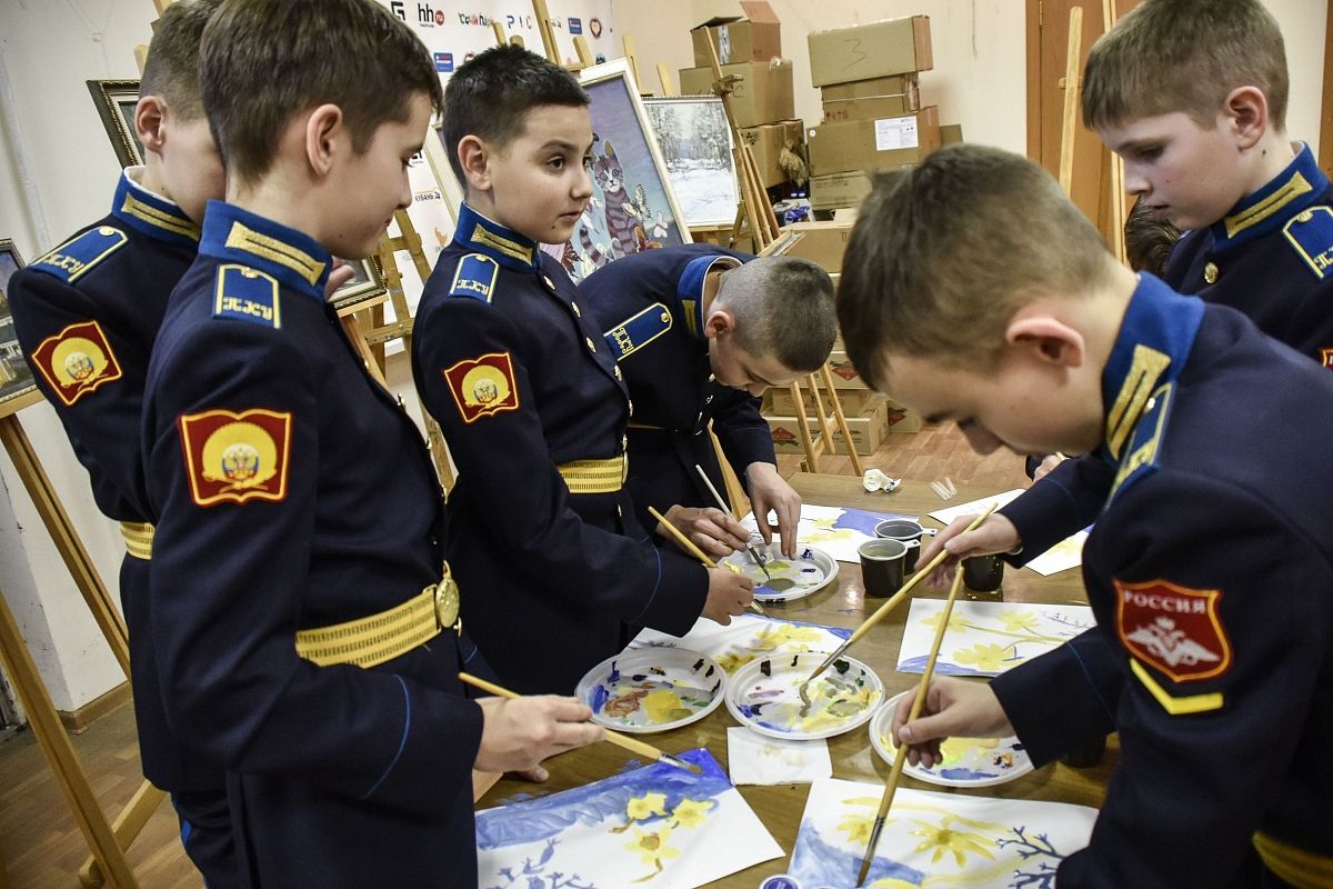 Уроки искусства кадетам преподали волонтеры центра – художник-реставратор Евгений Казицын, основатель художественной студии «Я рисую» Ольга Ратиева, художник-дизайнер Кристина Гринь. С центром их всех связывает многолетняя дружба и сотрудничество. В этот раз решили писать картины на весеннюю тематику.
