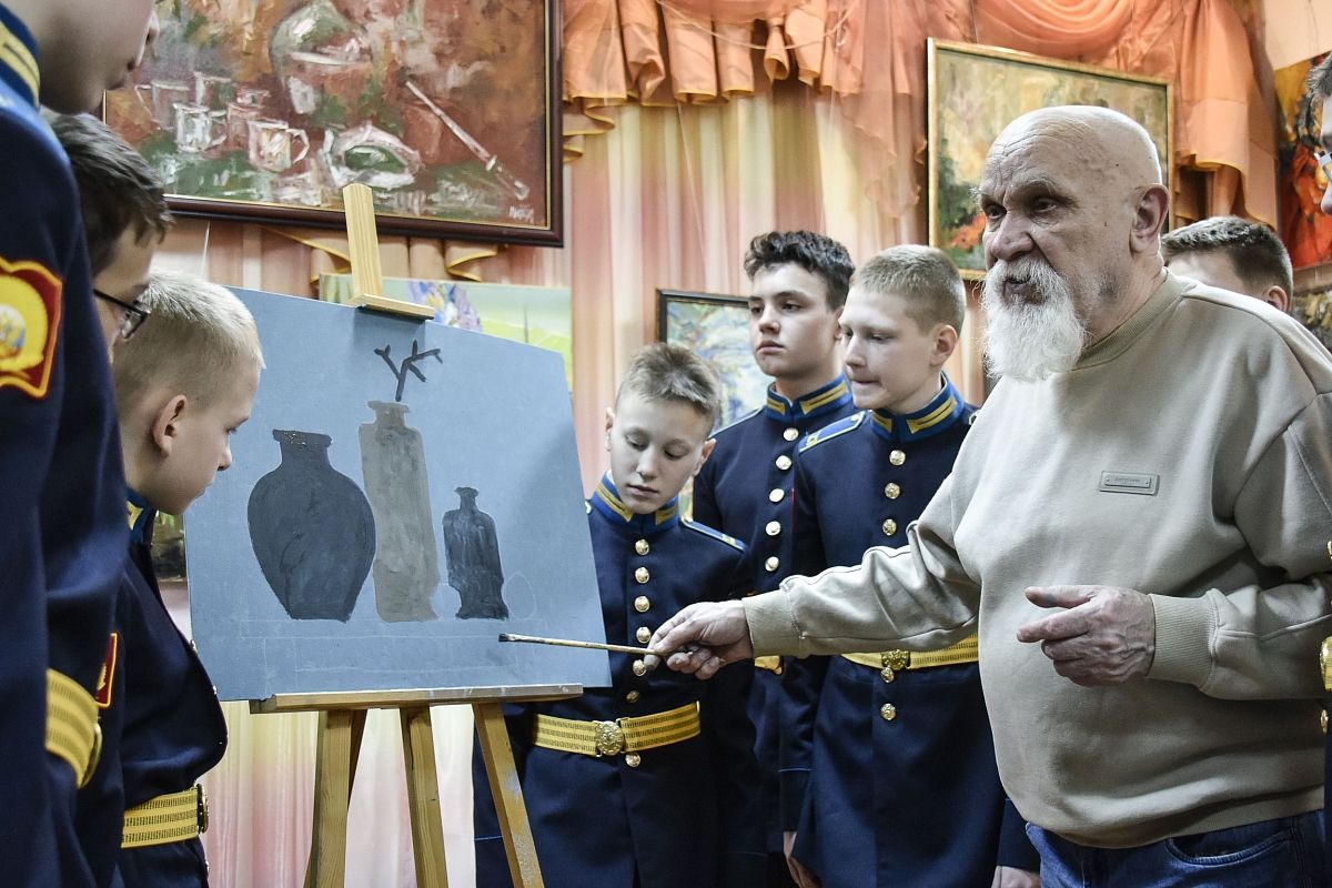 – Нашему сотрудничеству с Президентским кадетским училищем уже 15 лет. Мы воспитываем любовь к родине при помощи приобщения к родной культуре, искусству. Многие курсанты занимаются творчеством в своем учебном заведении, но всегда надо учиться у педагогов высшей школы и общаться с ними. Подобные мероприятия как раз и позволяют ребятам выйти за рамки учебного процесса. Встречи с художниками способствуют раскрытию их творческого потенциала, помогают развитию фантазии, эстетического вкуса, учат находить новые идеи, мыслить нестандартно, – сказал руководитель Центра реабилитации искусством, председатель рабочей группы по доступной, комфортной и безопасной среде Совета при губернаторе Краснодарского края по развитию гражданского общества и правам человека Павел Снаксарев. Сам он, кстати, по образованию – инженер и педагог.
