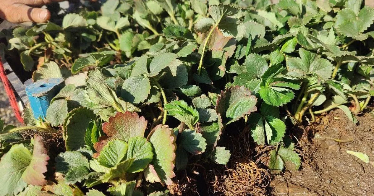 Дефицит азота. Свежевскопанная земля содержит микроорганизмы, которые активно поглощают азот, необходимый для роста кустов. Значит, клубника медленно развивается.