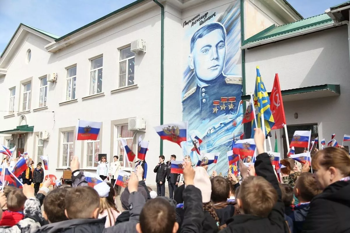 В Абинске открыли мурал с изображением Александра Покрышкина, трижды Героя Советского Союза, маршала авиации, участника боев в небе Кубани в годы Великой Отечественной войны. Рисунок появился на стене школы №3, носящей имя летчика. О событии сообщил глава муниципалитета Илья Биушкин.