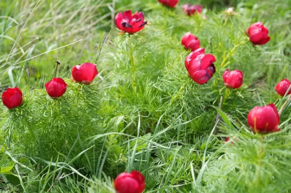 Успенская степь покрыта ярко-красными цветами пиона тонколистного.