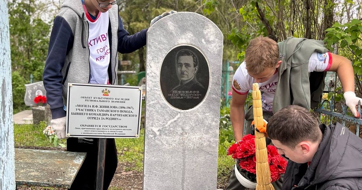 Активисты уже навели полный порядок на могилах, находящихся в реестре культурного наследия края: матроса крейсера «Аврора» Тихона Гришина (1891–1968), участника Таманского похода, командира Крымского партизанского отряда «За Родину» Ивана Живилова, Героя Советского Союза Мечислава Луговского.