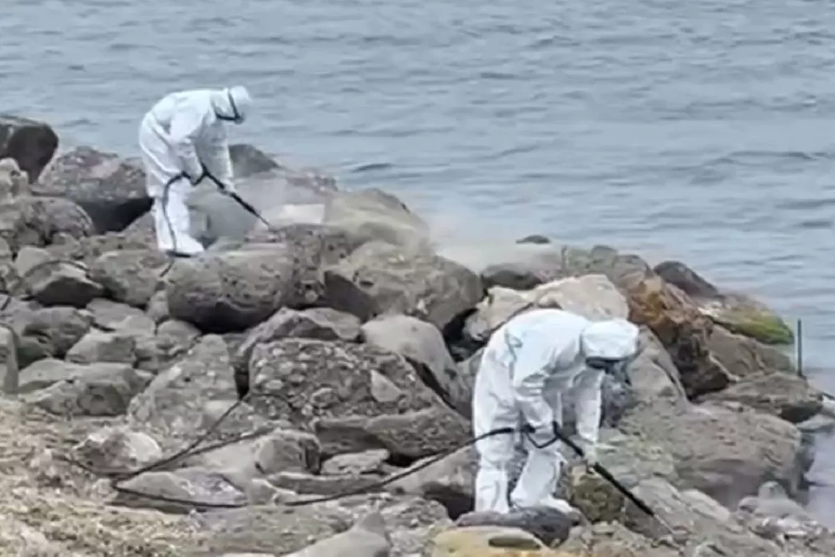 На «Высоком берегу» спасатели очищают камни при помощи пескоструйного аппарата и специальных моек, подающих горячую воду под высоким давлением. Вокруг участка в воде установили боновые заграждения, чтобы предотвратить распространение мазута в акватории. На поверхности воды распределили биосорбент. Это необходимо, чтобы собрать нефтепродукты из воды, уточнили в Оперштабе.