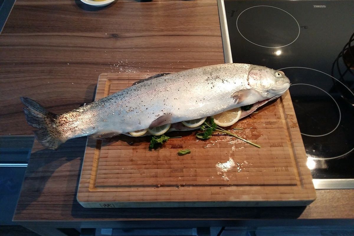 Обычно на первомайские праздники мы готовили шашлыки – их обожает муж. Но в этом году он категорически заявил, что пора вносить корректировки в семейные традиции. И предложил запечь форель по рецепту его мамы. Рыба получается, действительно, отменная. Попробуйте сами!