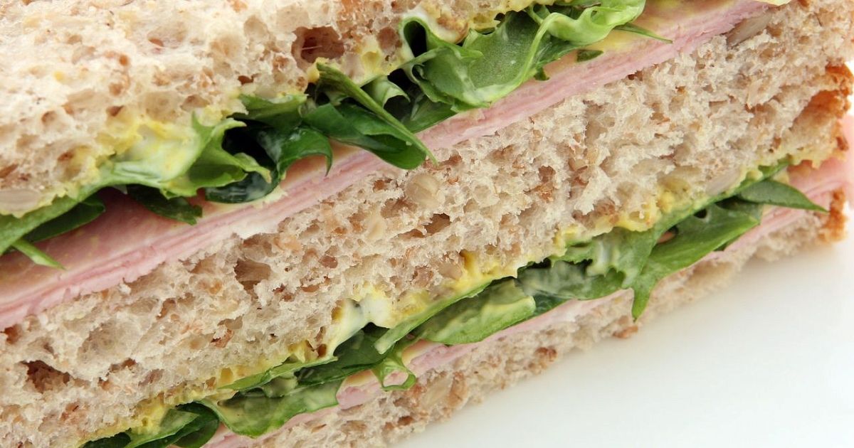 Хлеб из цельнозерновой или ржаной муки на закваске. Он не только вкуснее, но и дольше остается свежим. Если времени совсем в обрез, подсушите обычный хлеб в тостере или на сухой сковороде – так он не размокнет от начинки.