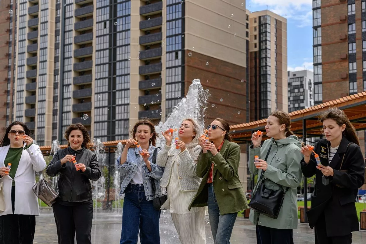Кстати, журналисты в завершение пресс-тура вспомнили детство и потренировались в надувании мыльных пузырей в живописной локации «Флагманского» – рядом с плоским танцующим фонтаном.