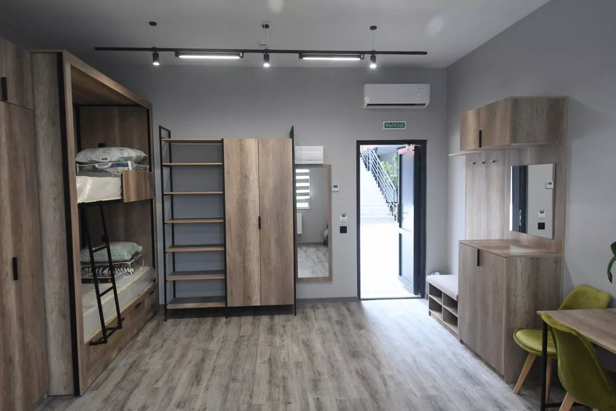 В комплексе созданы все условия для комфортного проживания студентов во время производственной практики. Оборудованы комнаты и кухни, места для отдыха, благоустроена территория и спортплощадки. Корпуса вмещают более 100 человек.