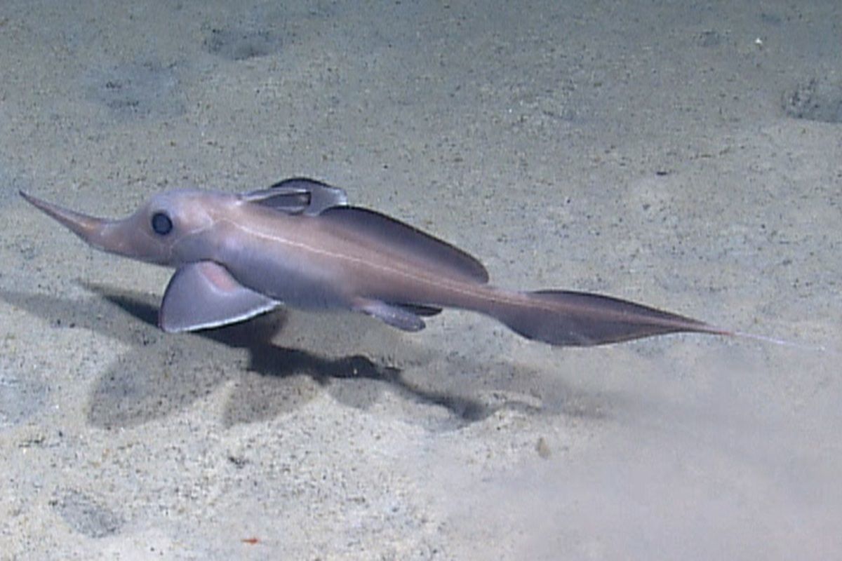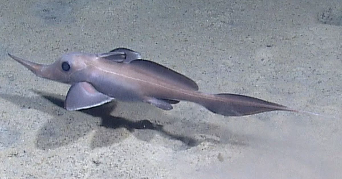 Но самое удивительное – морды некоторых химер удивительным образом похожи на жутковатые человеческие лица или маски. А все из-за длинного хрящеватого носа. Он нужен рыбам для поиска пищи. На самом дне. В полной темноте, на глубине 3 тысячи метров.