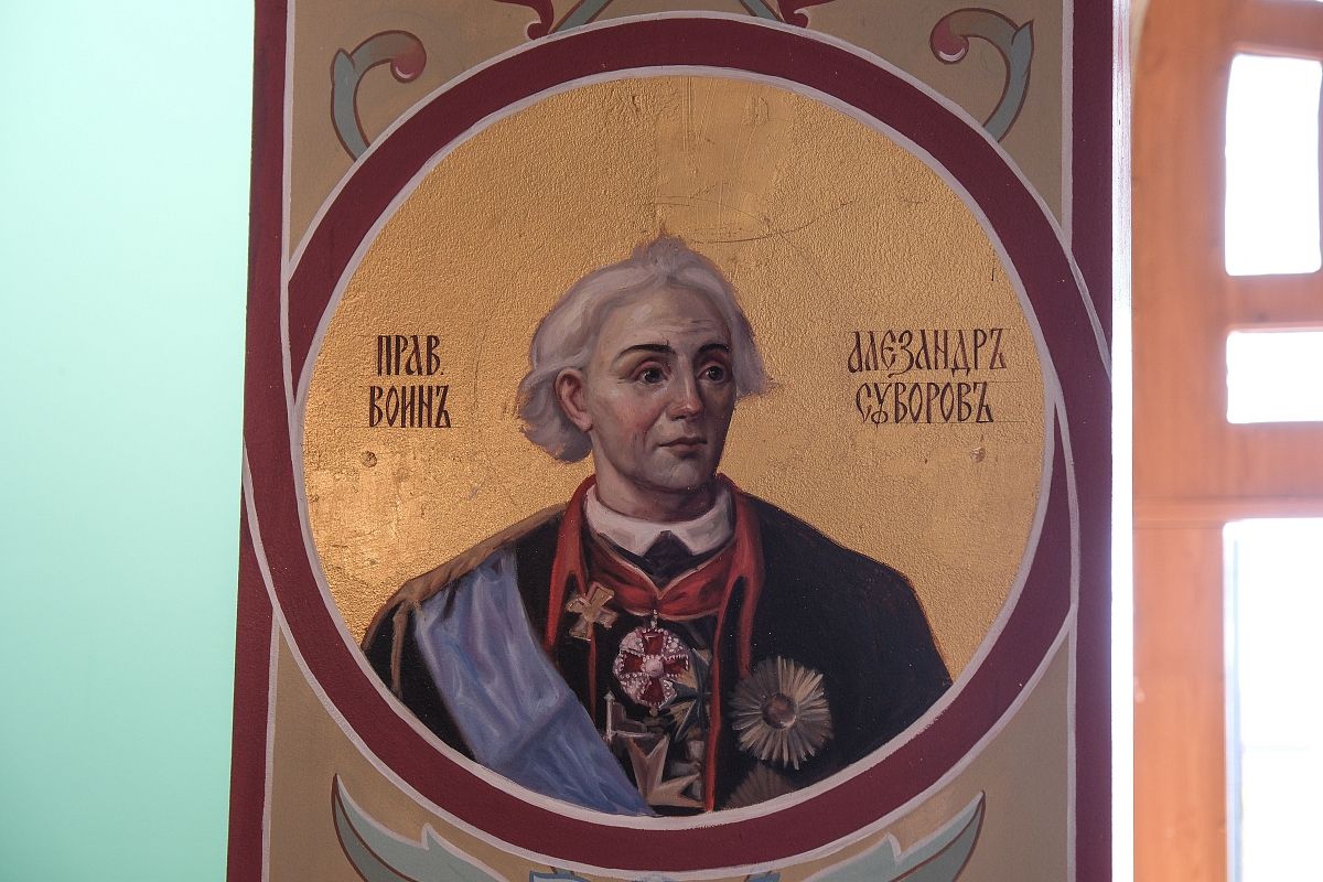 В реализацию губернаторского гранта входила и роспись западного центрального крыла храма. Он был возведен в память о погибших в современных военных конфликтах солдатах и офицерах спецподразделений ФСБ, МВД России, а также всех отдавших жизни во имя родной земли. Поэтому на стенах храма можно увидеть изображения защитников нашей Родины.