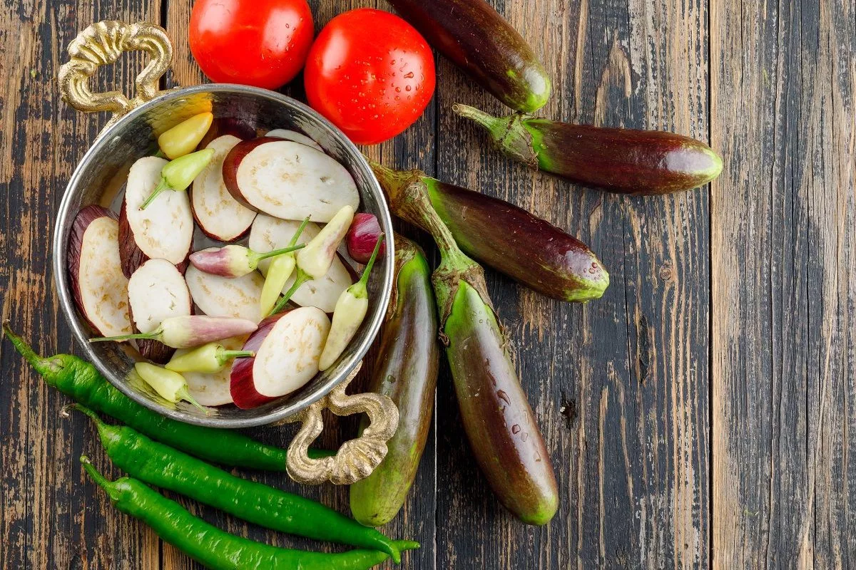 Все баклажаны помойте, отрежьте зеленые хвостики. Нарежьте их кружочками, толщиной 8-10 мм. Очистите от кожуры морковь. Болгарский перец разрежьте вдоль и удалите семенную коробочку. Морковь также надо нарезать кружочками, а перец - крупной соломкой.