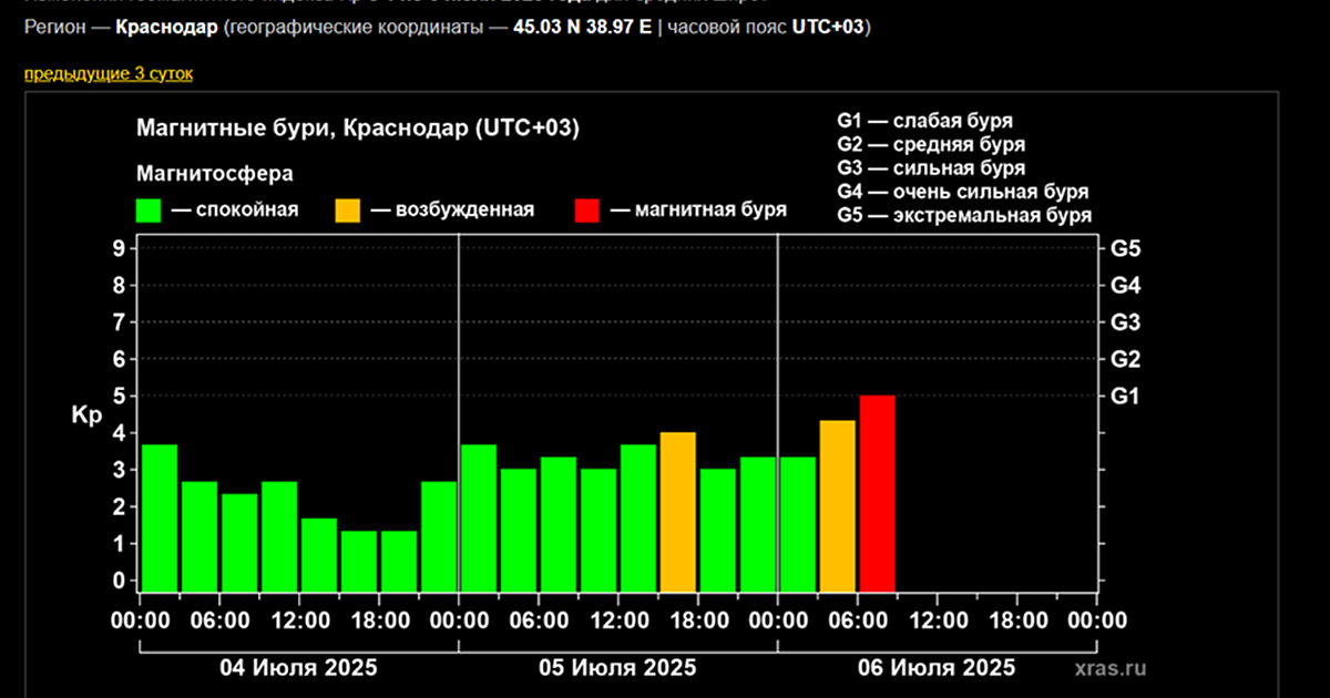 Магнитная буря уровня G1 внезапно ударила по Земле 6 июля. Она началась около 8.00, сообщается на сайте Лаборатории солнечной астрономии ИКИ и ИСЗФ.