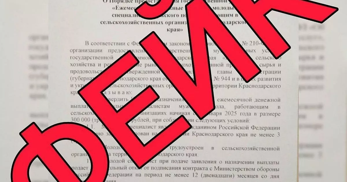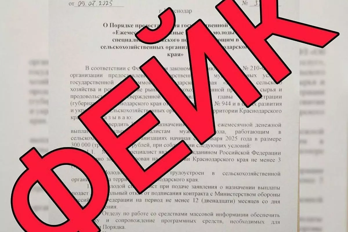 Сельхозпредприятиям Краснодарского края на электронную почту пришла рассылка, якобы профильное региональное министерство предоставляет ежемесячные выплаты сотрудникам за добровольный отказ от подписания контракта с Минобороны РФ на период не менее 12 месяцев. В Оперштабе Кубани информацию назвали фейком, а документ – подделкой.
