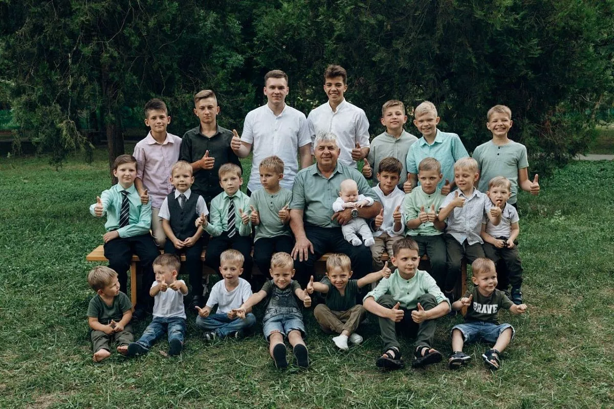 История их любви была простой: они встретились, пообщались, понравились друг другу и поженились. Совхоз выделил молодой семье участок под строительство дома, а в сентябре 1980-го на свет появился их первенец – Павел. Чтобы сынишке не было скучно одному, Елена Яковлевна через год родила ему братика Игоря. Потом рожала практически каждый год. Один за другим появились на свет Андрей, Виталий, Тимофей, Марина и Евгений, а затем зачастили девчонки – Лия, Инна, Дина, Екатерина и Анна.