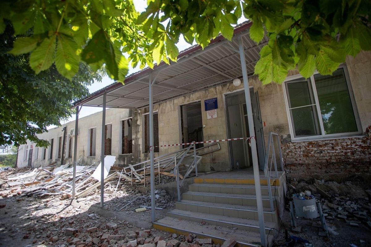 Контракт с подрядчиком был заключен 1 июля, и тот сразу приступил к демонтажу кровли, внутренних перегородок, оконных блоков, коммуникаций. Работы организованы в течение светового дня. Чтобы не прекращать функционирование поликлинического отделения, на время капремонта ему предоставлены кабинеты на первом этаже больницы.