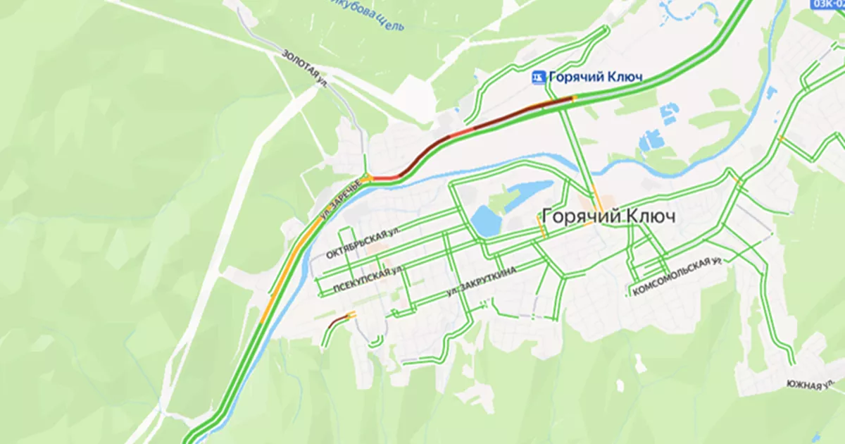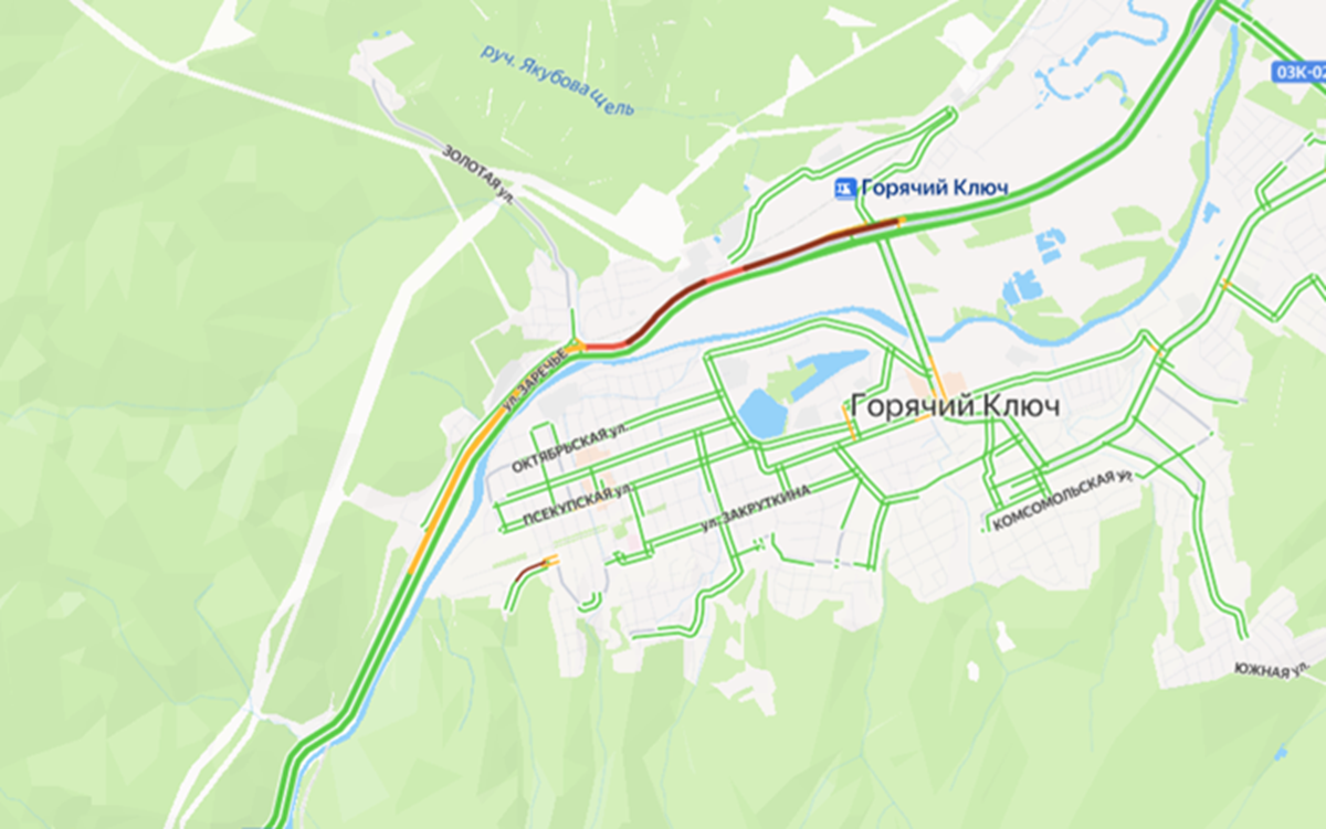 По данным «Яндекс.Карты», машины стоят от пересечения с улицей Революции и до скалы Петушок. Медленно едут авто от Хребтового до Молдавановки. В обратном направлении затруднений нет.