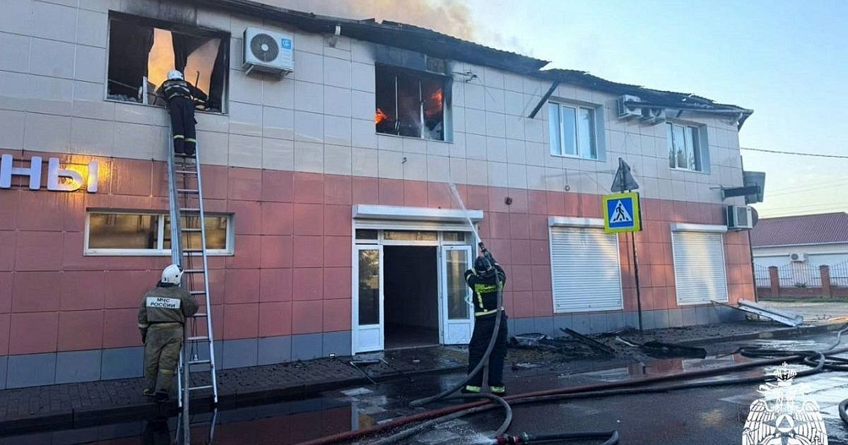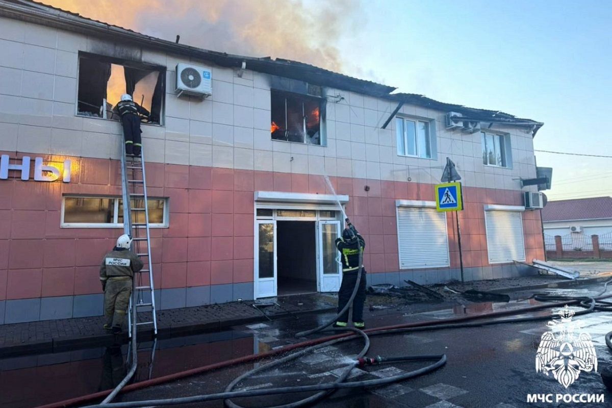 Сегодня около 04.40 загорелось двухэтажное здание по улице Гоголя, 75/1 в микрорайоне Пашковском. На кадрах, опубликованных МЧС по региону, видно, что полыхает магазин шин.