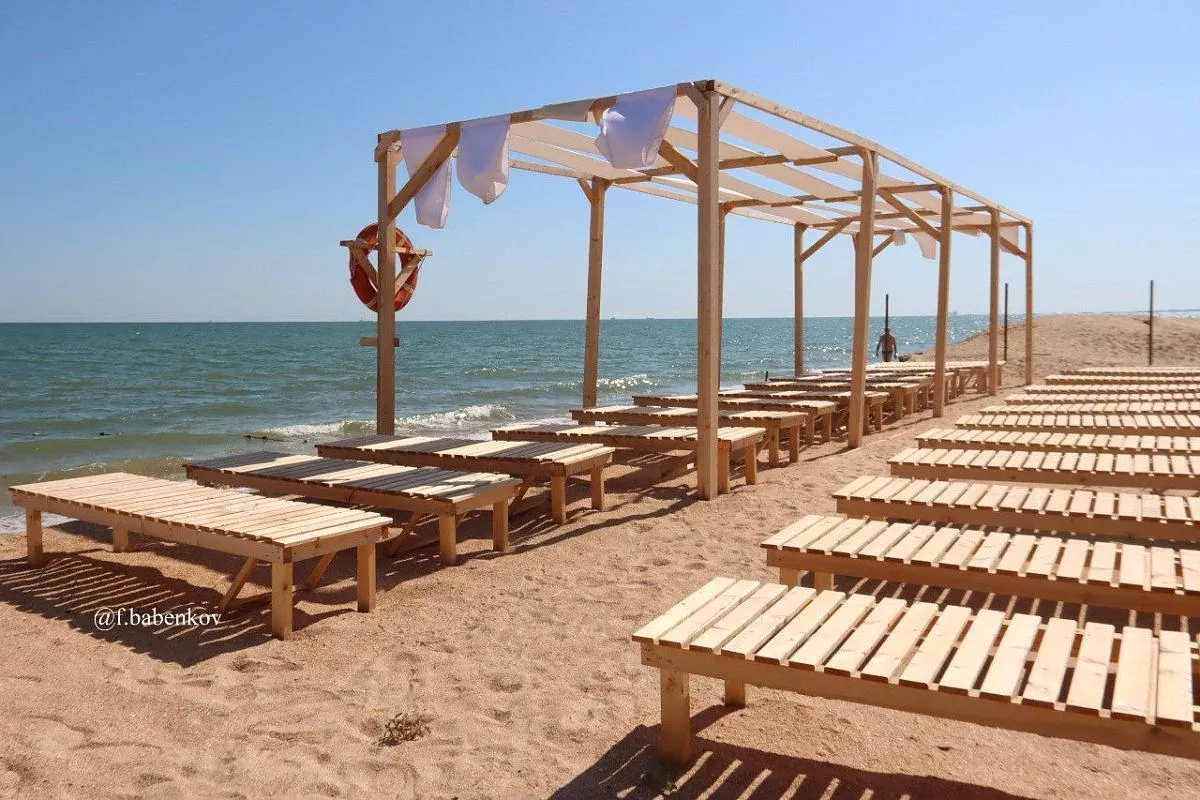 На пляже появились новые современные зоны солярия с шезлонгами и зонтиками, а также раздевалки, душевые и т.д.