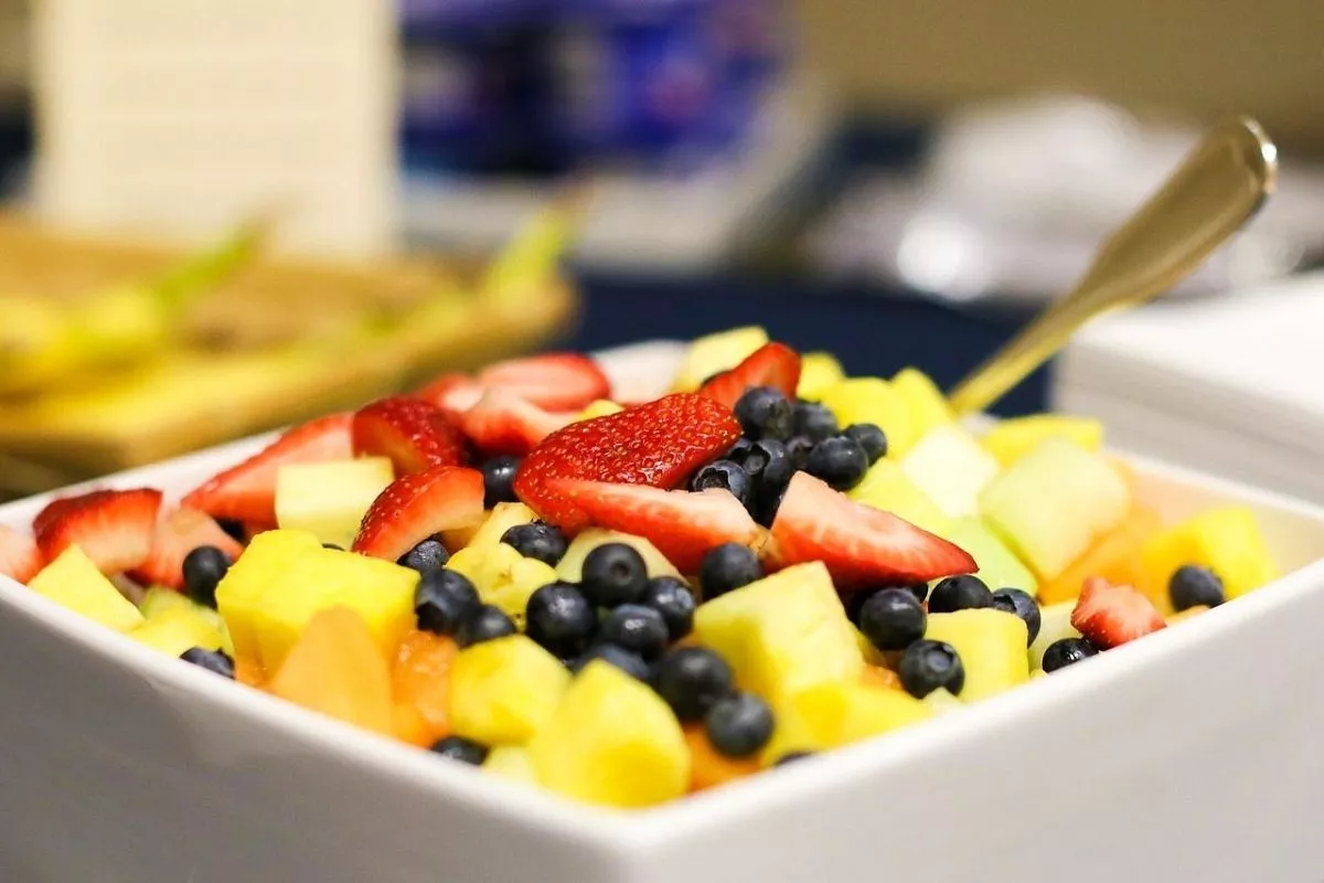 фруктовый салат. Сладкие фрукты и ягоды – отличная альтернатива пирожным и панкейкам;