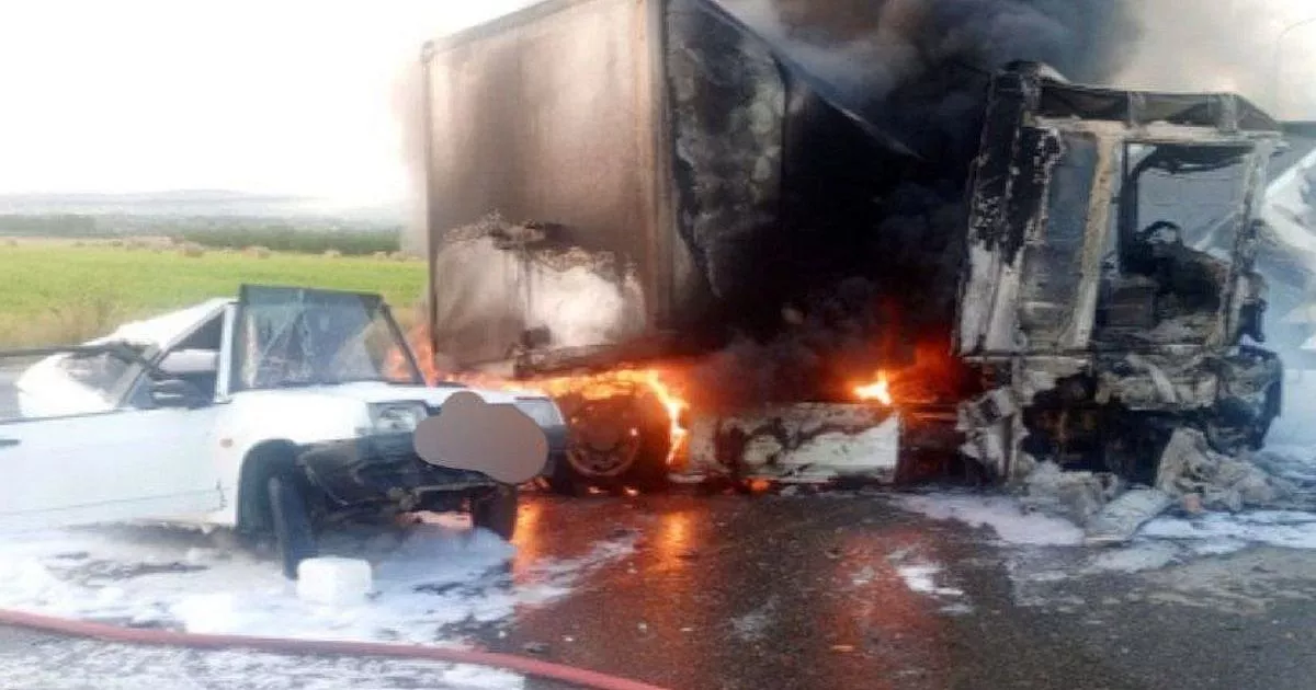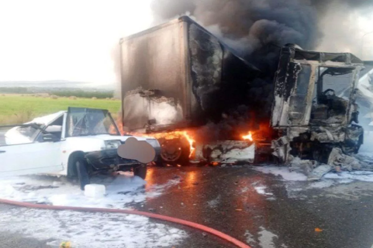 Сегодня рано утром в Темрюкском районе на автодороге Новороссийск – Керчь водитель грузового авто Renault Magnum столкновение ВАЗ-2108, который двигался впереди. От удара оба автомобиля загорелись.
