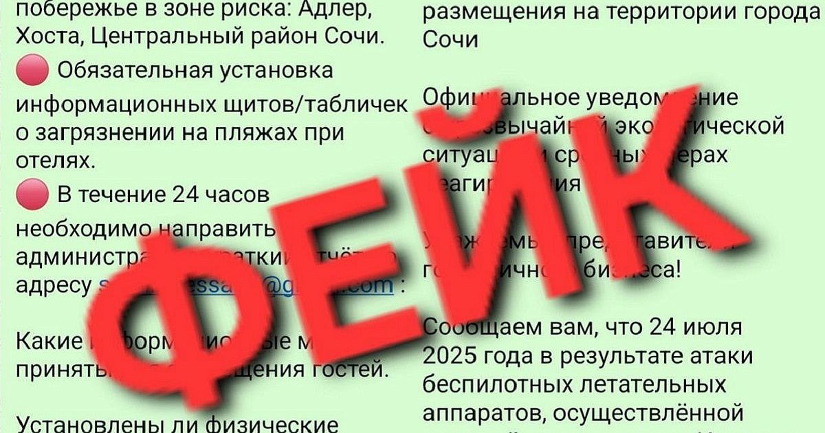 Напомним, 21 июля в мессенджерах и социальных сетях распространили ложную информацию от имени Минприроды России, якобы министр Александр Козлов подписал приказ о закрытии побережья Черного моря в районе Сочи из-за загрязнения морской воды.