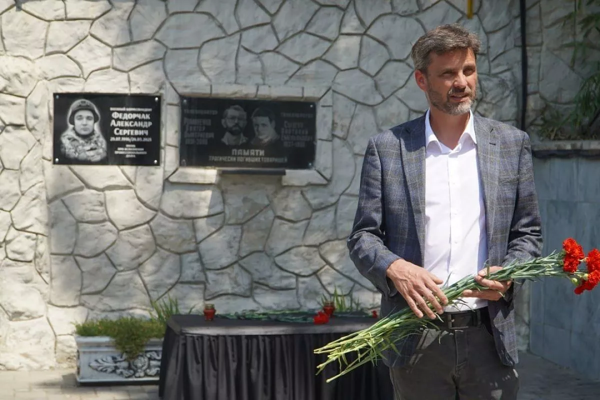 На территории телерадиокомпании «Крым» 29 июля состоялось торжественное открытие мемориальной доски памяти погибшего корреспондента газеты «Известия» Александра Федорчака. Об этом сообщает издание.