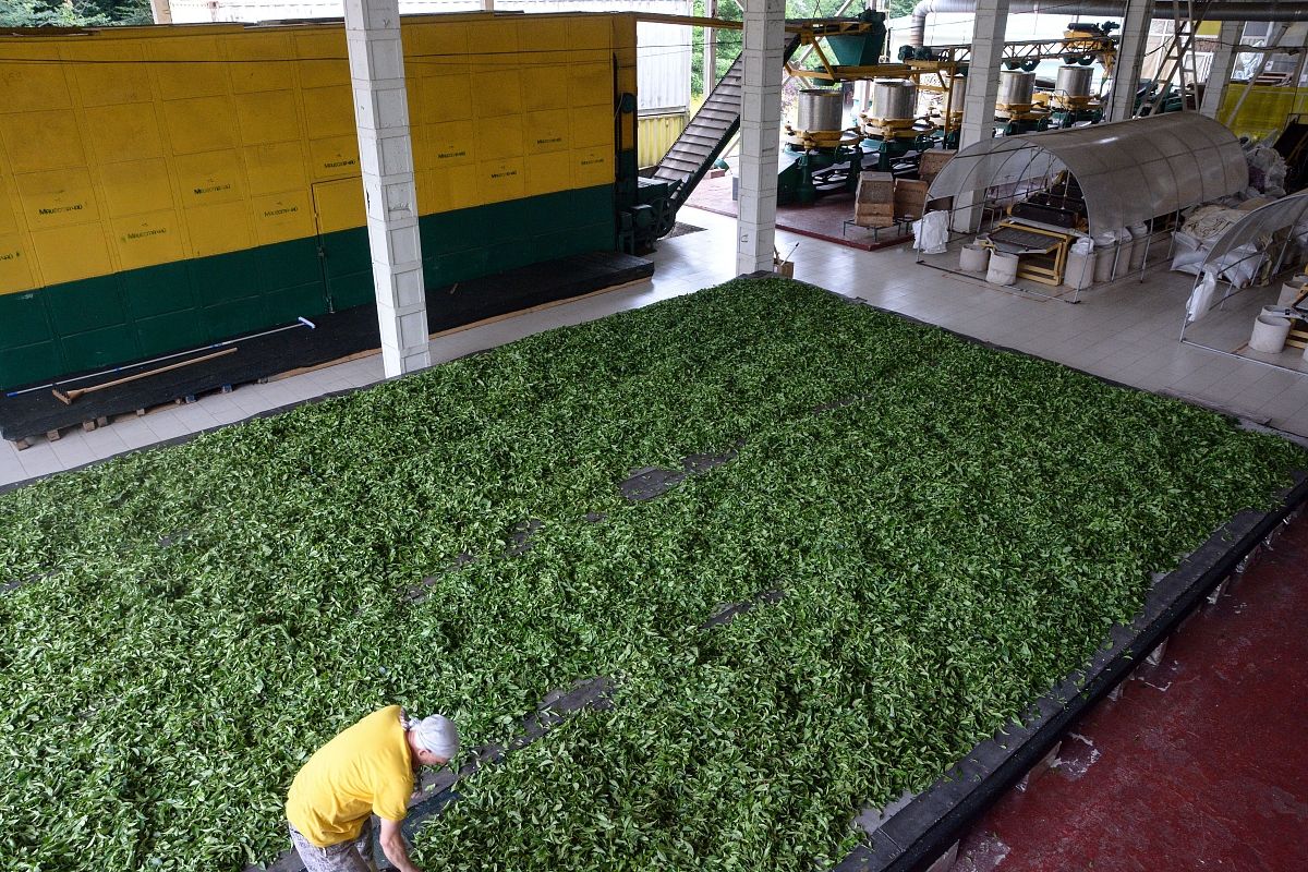 – Черный чай делается чуть больше суток, зеленый на порядок меньше, несколько часов. По сути существуют две различные технологии изготовления для каждого чая в отдельности, – объяснил технолог предприятия Валерий Понятовский. – Главное отличие – в ферментации. Черный чай после скрутки на роллерах ферментируется, потом сушится. Зеленый наоборот – нагревается перед роллерами, чтобы ферментации практически не было. Так из одного растения производят два совершенно разных напитка. Красный и желтый чаи делаются по типу черного, только процесс ферментации останавливается нагревом, не доводится до конца. При данном производстве важно уловить правильный момент, когда тонкий процесс ферментации будет в необходимой степени пройден, и затем отправить чай в печь на сушку.