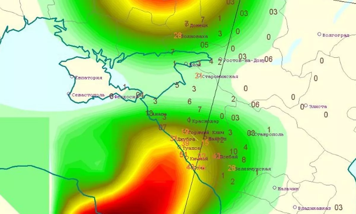Аномально много воды вылили мощные дожди за минувшие сутки на Краснодарский край. Об этом 4 августа сообщил в своем телеграм-канале ведущий синоптик центра погоды «Фобос» Евгений Тишковец, опубликовав карту осадков.